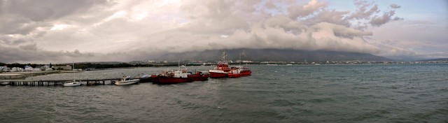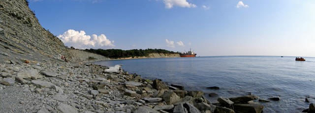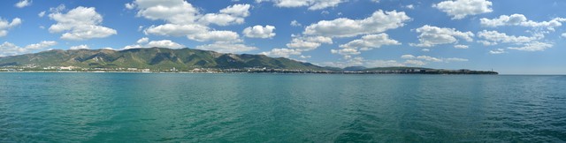 Панорама Геленджикской бухты с моря. Центральная часть и Маркотхский хребет