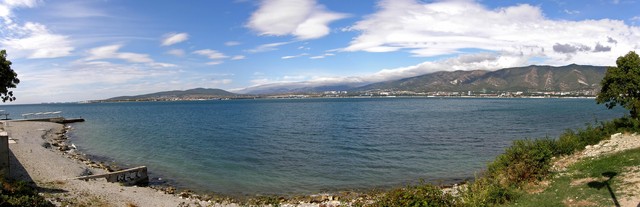 Геленджикская бухта. Вид на горы и маяк с Тонкого мыса