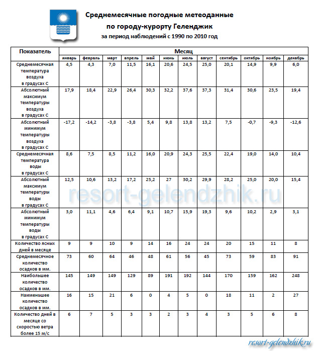 Архив наблюдений за погодой в Геленджике за 20 лет